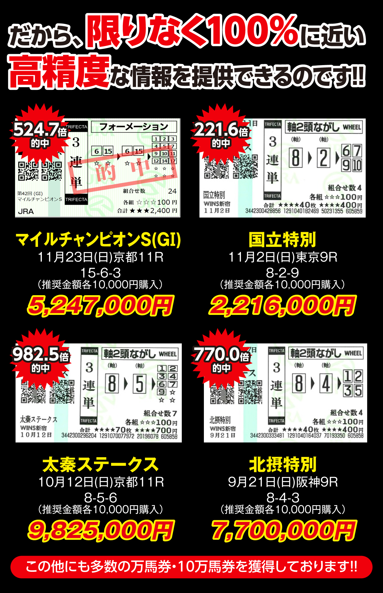 当サイトにご登録いただいた情報は、競馬情報が取得できる各サービスの提供・会員管理に使用されます。合併その他の理由により個人情報を取得した場合、継承前の利用目的の範囲を超えて取扱うことは一切ありません。但し、以下の項目に該当する場合はこの限りではありません。