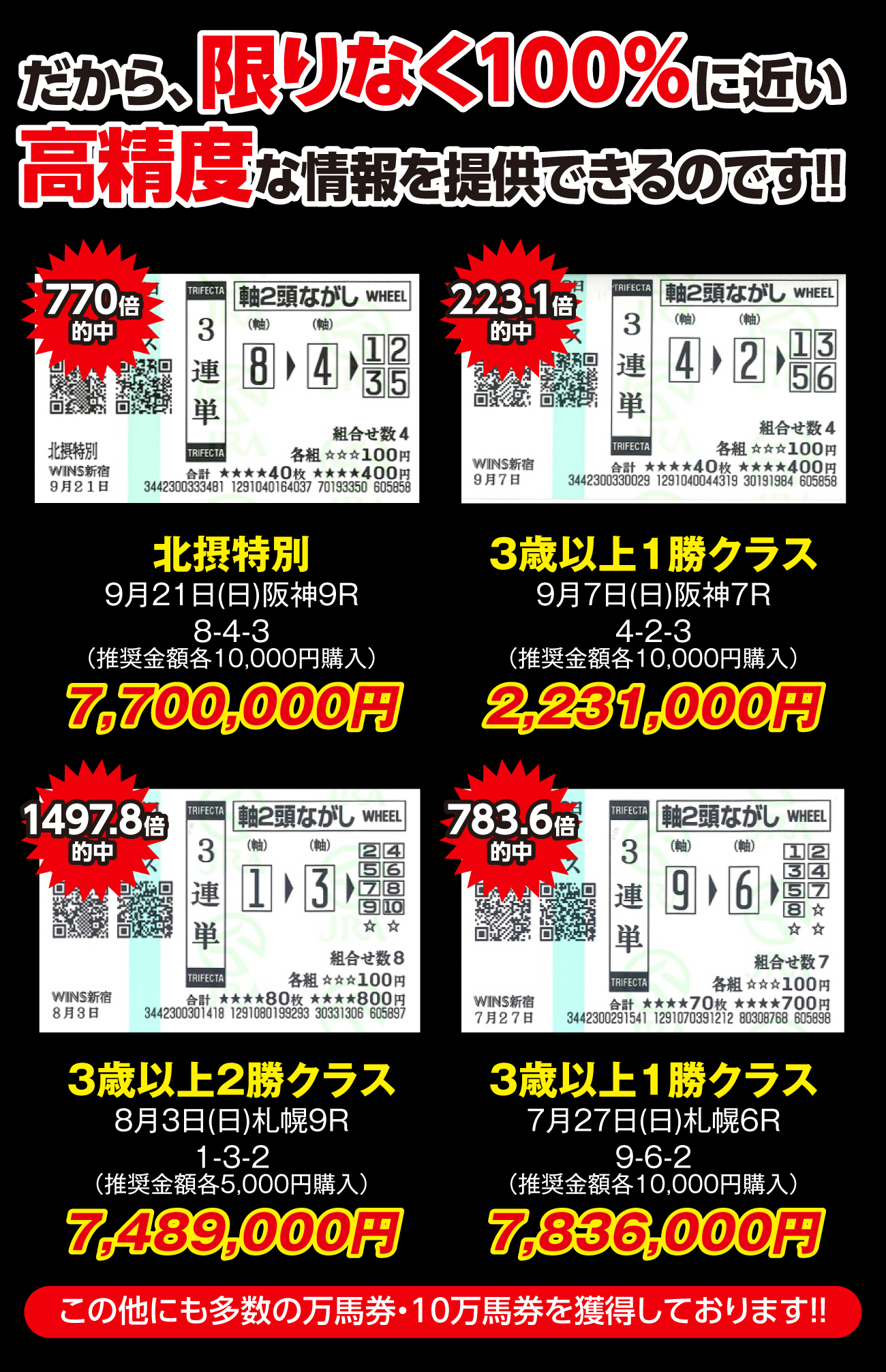 当サイトにご登録いただいた情報は、競馬情報が取得できる各サービスの提供・会員管理に使用されます。合併その他の理由により個人情報を取得した場合、継承前の利用目的の範囲を超えて取扱うことは一切ありません。但し、以下の項目に該当する場合はこの限りではありません。