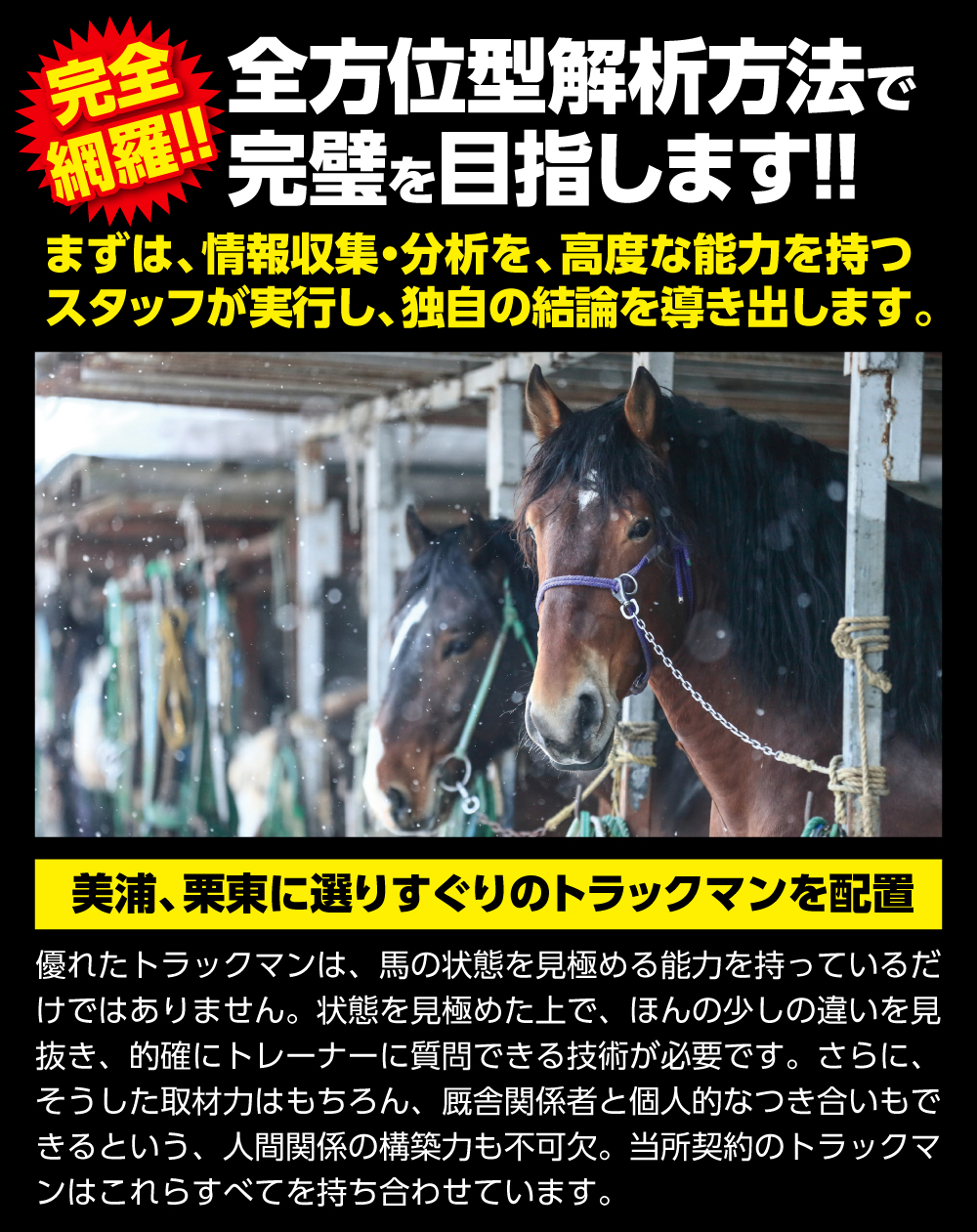 当サイトにご登録いただいた情報は、競馬情報が取得できる各サービスの提供・会員管理に使用されます。合併その他の理由により個人情報を取得した場合、継承前の利用目的の範囲を超えて取扱うことは一切ありません。但し、以下の項目に該当する場合はこの限りではありません。